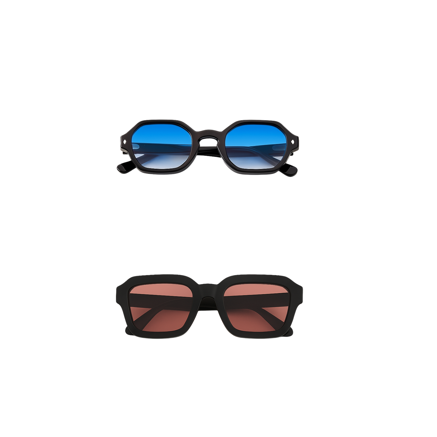 Vintage Polygoon Zonnebril Black/Blue (1+1 GRATIS)